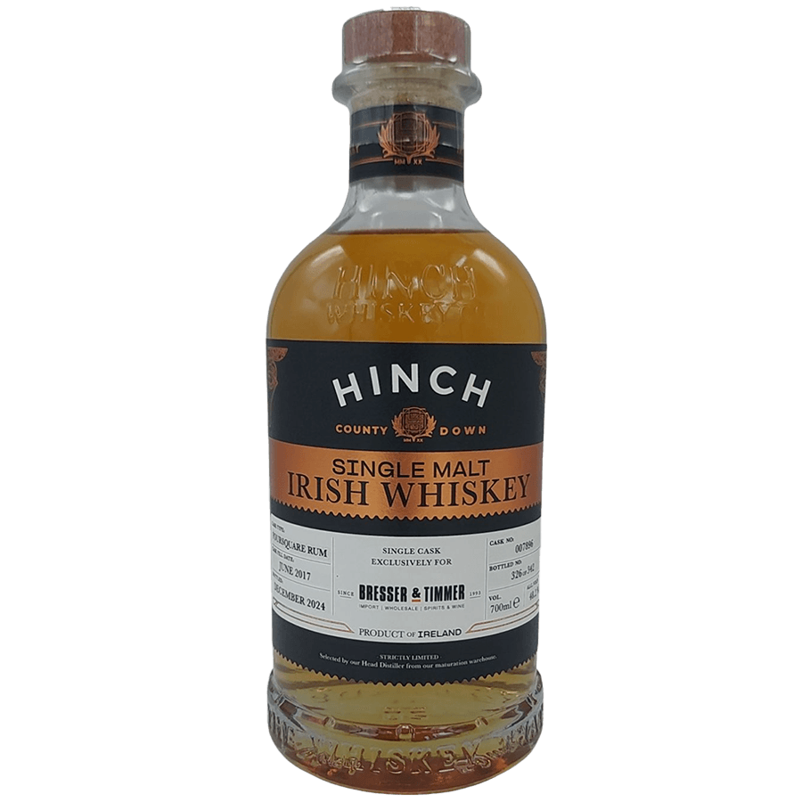 Deze zeer bijzondere uitgave van de Hinch Distillery is een samenwerking tussen de Noord-Ierse whiskeyproducent en importeur Bresser & Timmer. De whiskey heeft namelijk liggen rijpen in een vat met een rijke historie. Dit vat begon zijn reis als een Sauternes vat uit Bordeaux en hebben wij als in eerste instantie gebruikt om Rum op te laten rijpen die is geproduceerd op Barbados. De Daily Dram Rum Foursquare 15 YO – 2006 Sauternes barrel die daaruit voort is gekomen is overigens nog steeds bij ons te bestellen. Hierna hebben wij het vat af laten reizen naar Schliersee in Duitsland waar de SLYRS distillery er de Whisky SLYRS B&T Cask Foursquare – B&T 30 YO Anniversary botteling op heeft laten rijpen. Daarna hebben wij het vat naar Lisburn opgestuurd waar de Hinch Distillery er deze prachtige Single Cask Whiskey op heeft laten rijpen.