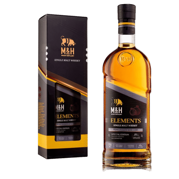 De M&H Elements serie is een samenstelling van smaken en aroma’s samengesteld uit zorgvuldig geselecteerde vaten. Sherry-, rode wijn- en Islay-vaten brengen steeds andere karakters naar voren in elke uitdrukking in deze serie, voorzien van bourbon- en STR-vaten en culminerend in prachtig evenwichtige single malts. Natuurlijke kleuren & indrukwekkende smaken.